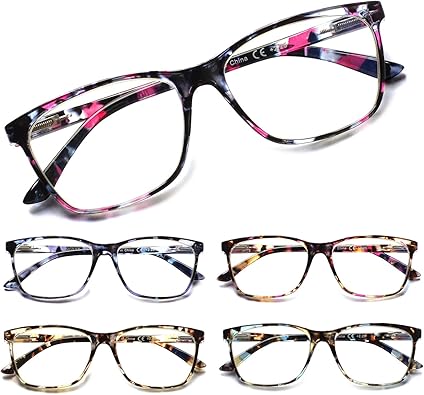 • Práctico juego: 5 pares de anteojos de lectura para computadora, funda suave para anteojos de lectura y paño de limpieza de microfibra.