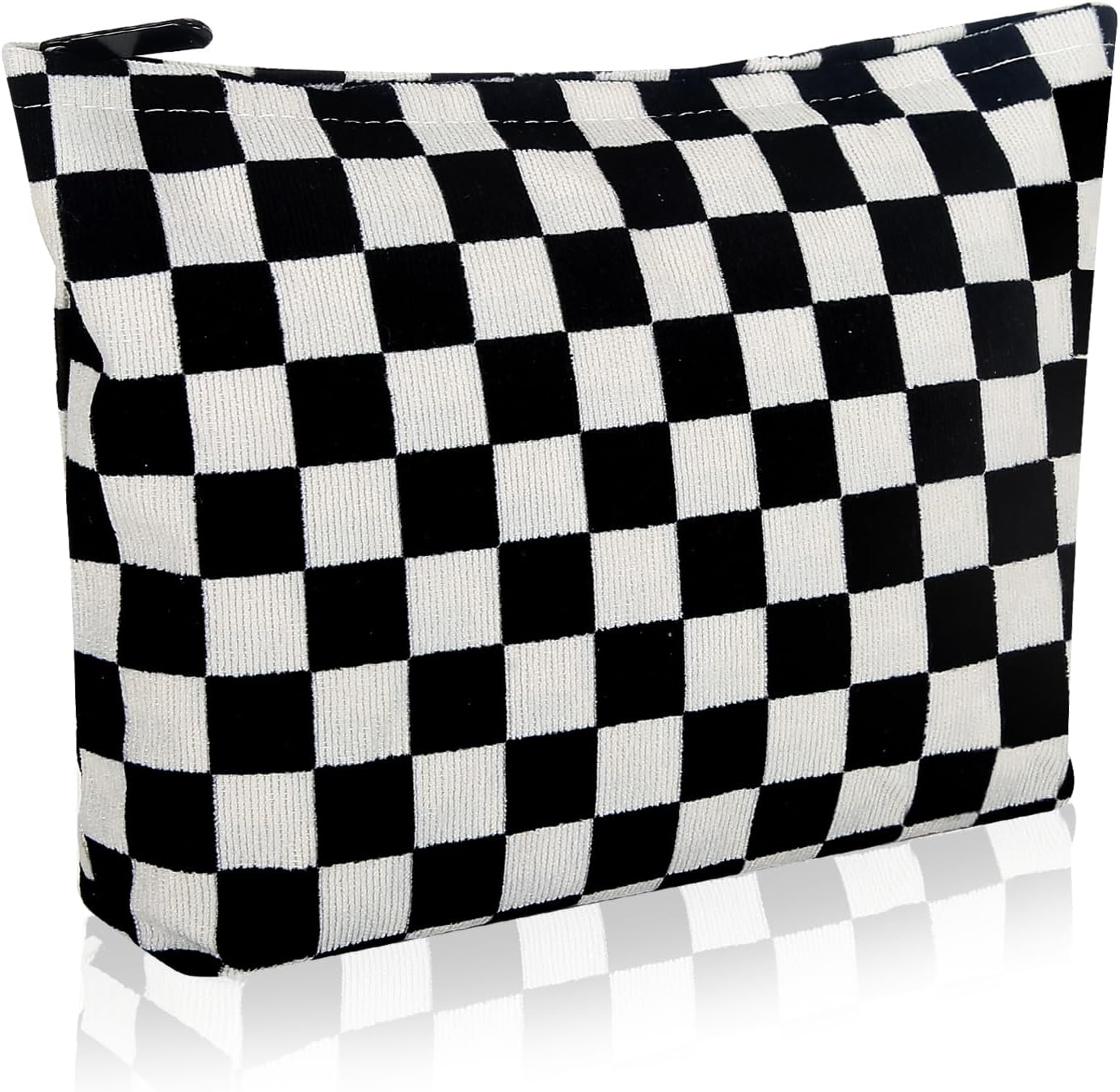 Bolsa de cosméticos Bolsa de maquillaje Preppy Cute Corduroy Neceser para mujeres esenciales de viaje, Negro (Plaid Black), Cara de moda