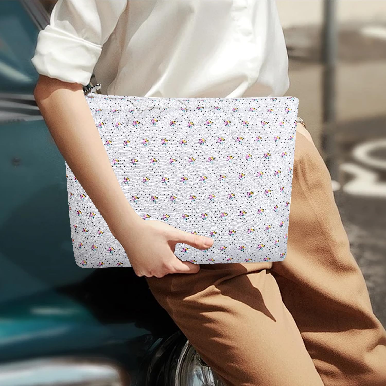 Bolsa de cosméticos Bolsa de maquillaje Preppy Cute Corduroy Neceser para mujeres esenciales de viaje, a22 Flor pequeña rosa, Cara de moda