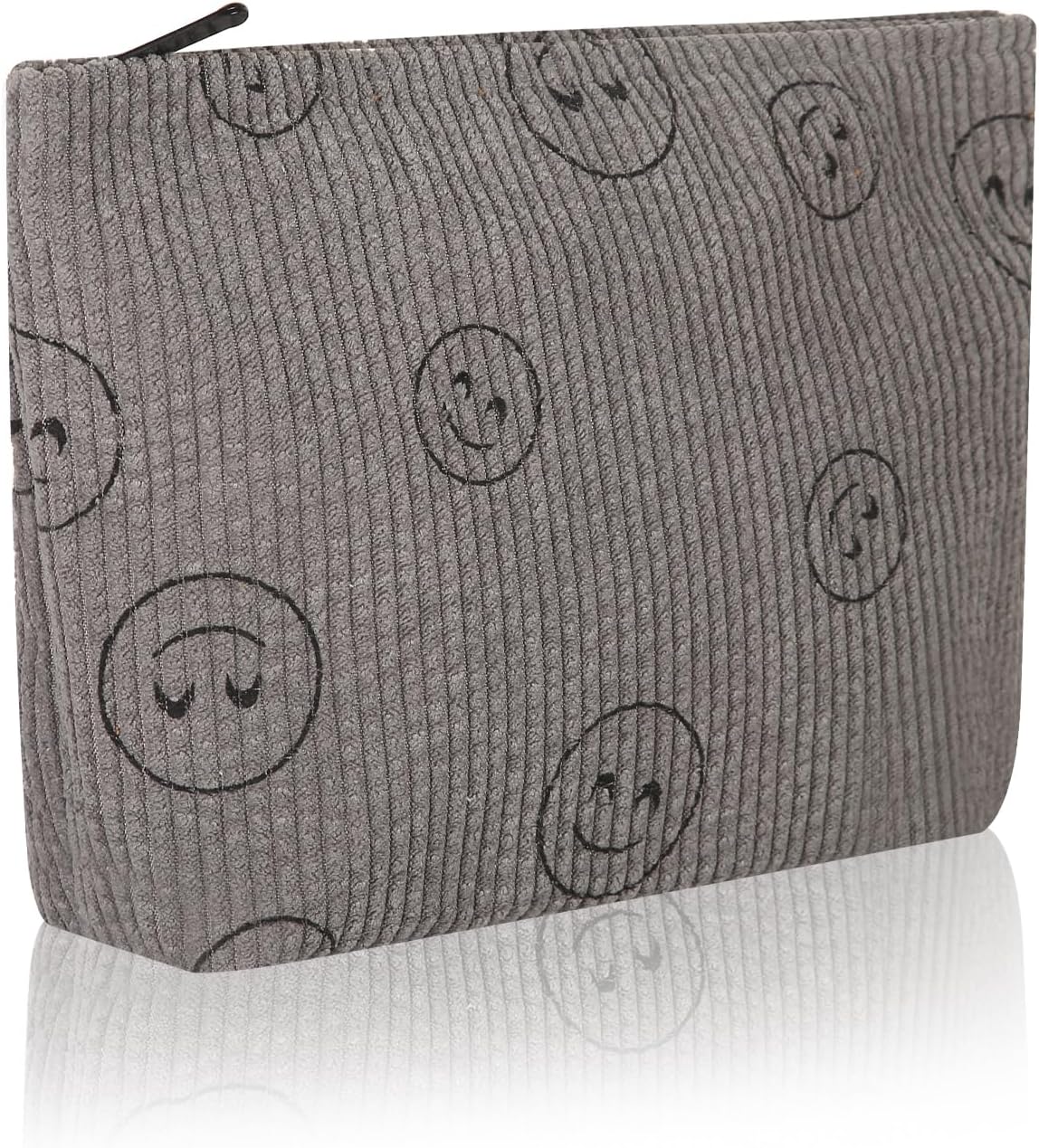 Bolsa de cosméticos Bolsa de maquillaje Preppy Cute Corduroy Neceser para mujeres esenciales de viaje, gris a22 , (GreyGrey), Cara de moda