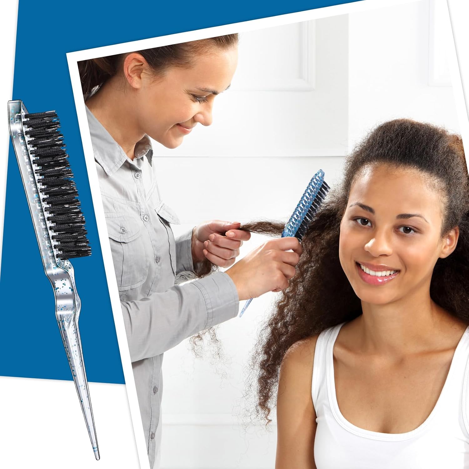 Geiserailie Juego de 3 cepillos de pelo de espalda resbaladiza, cepillo de cerdas para el cabello, cepillo de control de bordes, peine de burlas para mujeres, cabello negro (azul transparente)