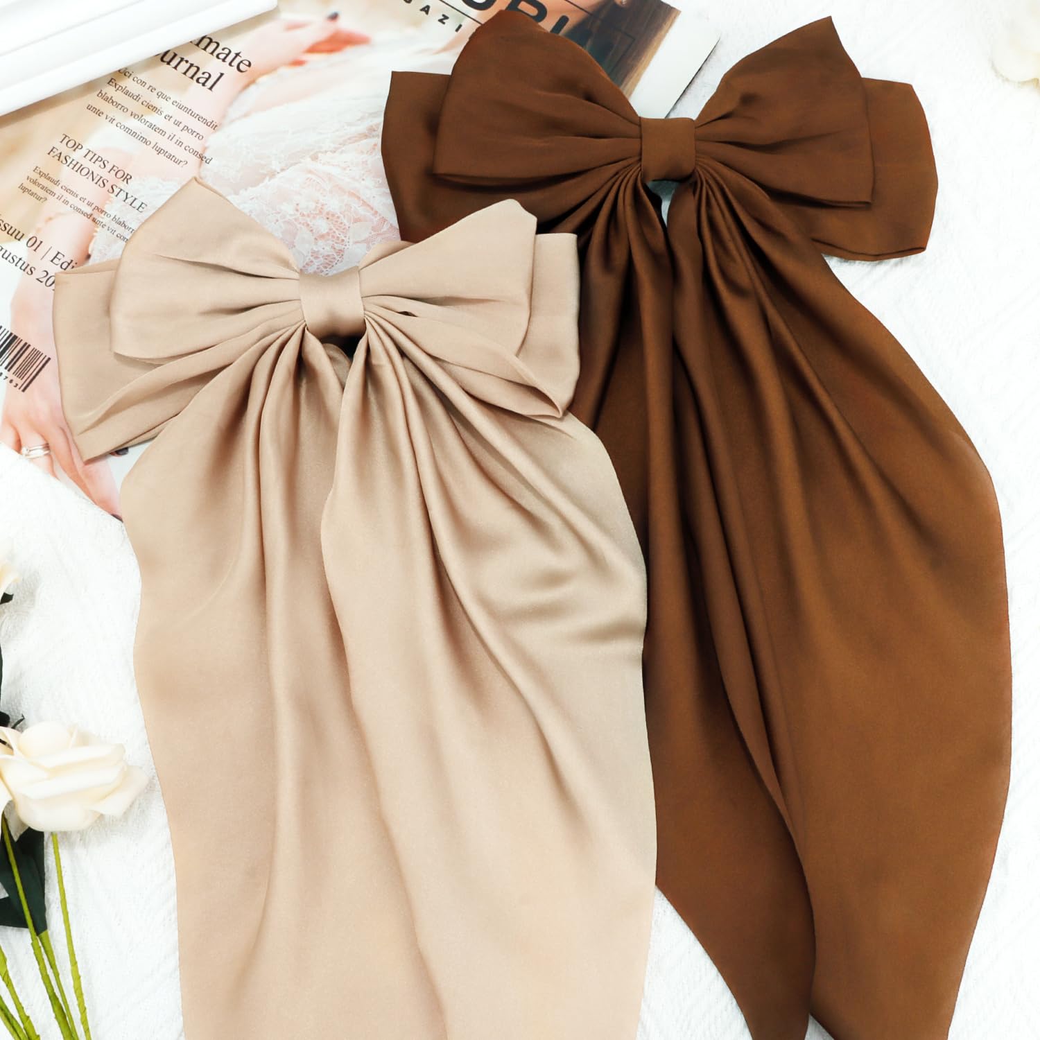 Lazos para el cabello, lazo de satén sedoso para el cabello, 2 unidades, cinta grande para el cabello, lazo grande, accesorios para el cabello para mujeres (marrón caqui) a