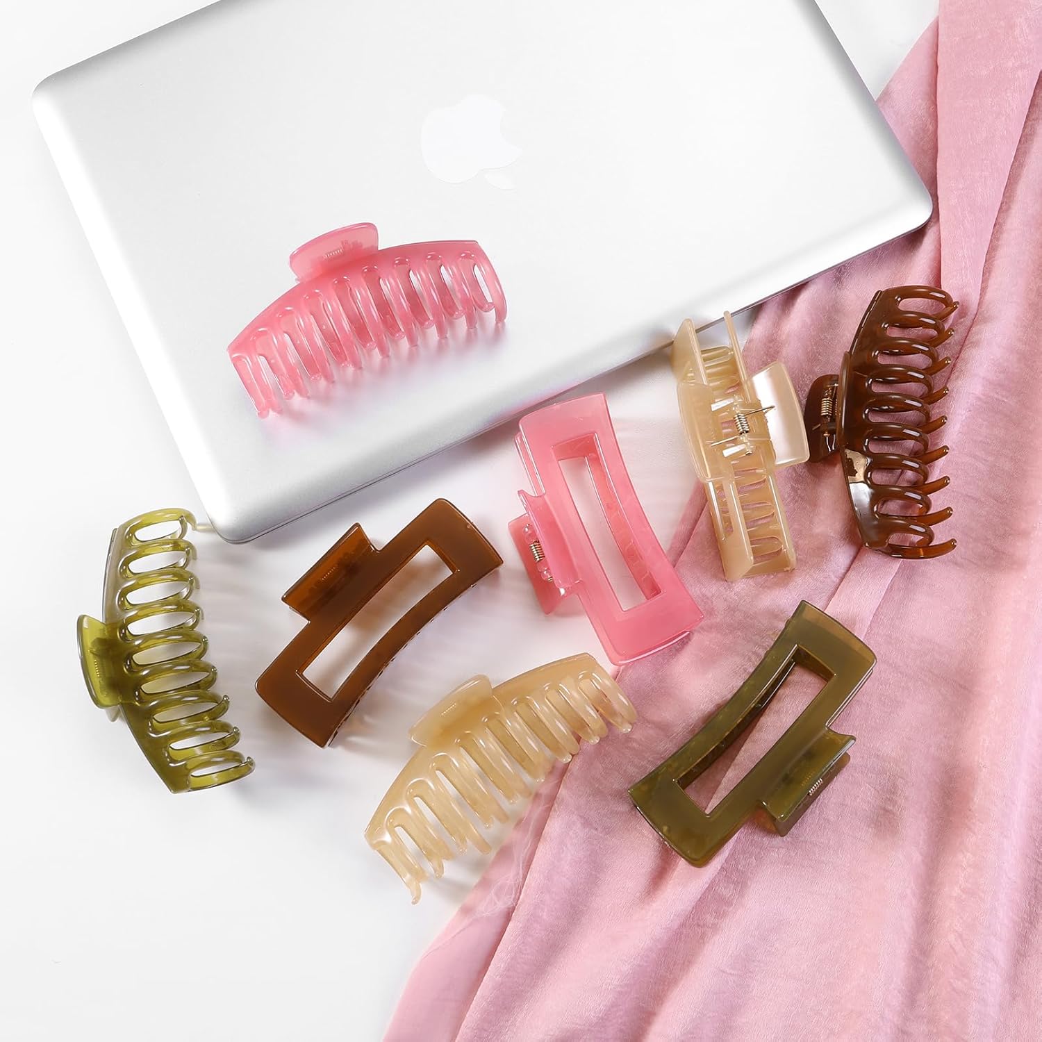 LuSeren - Paquete de 8 pinzas grandes para el cabello para mujer, de 4.3 pulgadas, sujeción fuerte, antideslizantes, para cabello fino, grueso o rizado, colores esmaltados, con caja de regalo