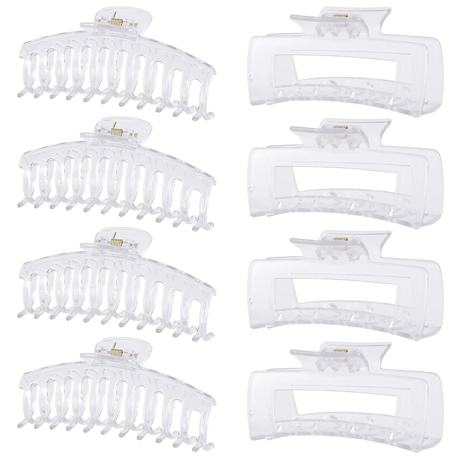 LuSeren - Paquete de 8 pinzas para el cabello para mujer, pinzas grandes de 4.3 pulgadas, para cabello fino, grueso y rizado, clips grandes de sujeción fuerte, transparentes