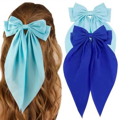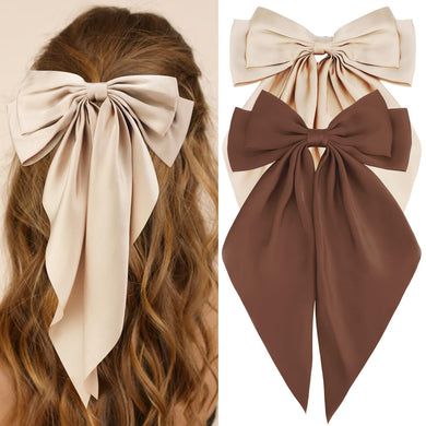 Pinza para el cabello, 2 lazos de satén sedoso para mujer a21, cintas de pelo de cola larga de gran tamaño,