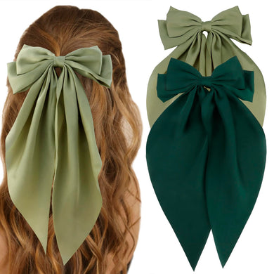 lazos de satén sedoso para el cabello, 2 lazos grandes de color verde y rosa, a21 cintas para el pelo de cola larga de gran tamaño