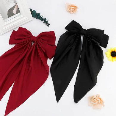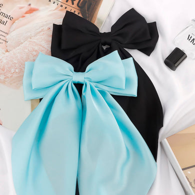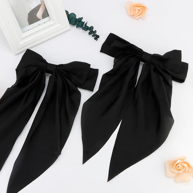 Pasadores de lazo de cola larga de gran tamaño, accesorios de satén sedoso negro para mujer, a21 clips de metal para niñas