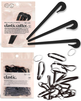 3 piezas de herramienta de corte de liga elástica negra y 100 bandas de goma negras pequeñas para el cabello, A21