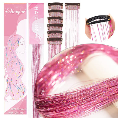 Paquete de 12 extensiones de cabello de oropel con clip de 20 pulgadas de oropel rojo rosa con purpurina,a21