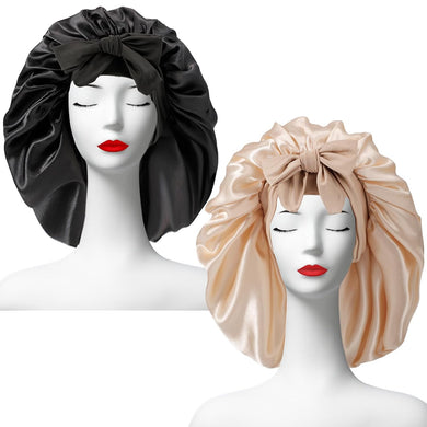 2 gorros de seda satinada para mujer, gorro de pelo con banda de corbata Q1