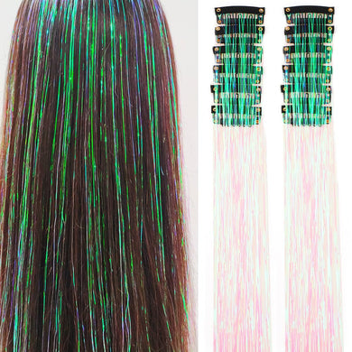 Paquete de 12 extensiones de cabello de oropel con clip de 20 pulgadas, extensiones de cabello a21 de oropel con purpurina colorida para fiesta,