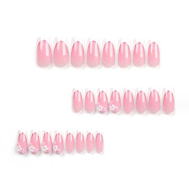 Uñas postizas de colores degradados, uñas acrílicas artificiales, uñas de almendra, uñas a presión, uñas postizas francesas de diseño de flores medianas coloridas, 24 piezas de cobertura a22 completa,