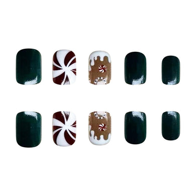Uñas postizas a presión de Navidad, uñas postizas cuadradas cortas con hombre de jengibre, copos de nieve, árbol de Navidad, diseños de caramelos, uñas postizas de Navidad,a22 uñas con pegamento mate,
