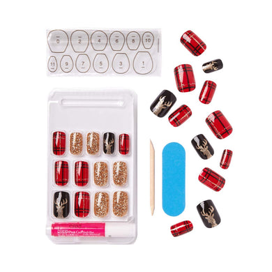 KISS Uñas postizas de edición limitada de diseño especial, estilo "milagro de Navidad", cuadrado mediano multicolor, con pegamento de uñas a22 , mini lima, barra de manicura y 24 uñas postizas