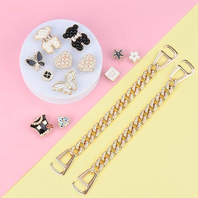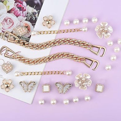Paquete de 17 dijes brillantes para zapatos para mujer, par de cadenas de zapatos de perlas, 12 dijes de decoración de joyería femenina para sandalias de zueco, A22 accesorios de abalorios de perlas