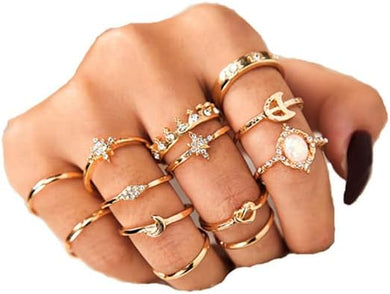 Sither Juego de 13 anillos para mujer, anillos de nudillos, anillos bohemios dorados, anillos de cristal con gemas vintage, conjuntos de anillos de nudo para adolescentes, fiestas, uso diario, regalo A23