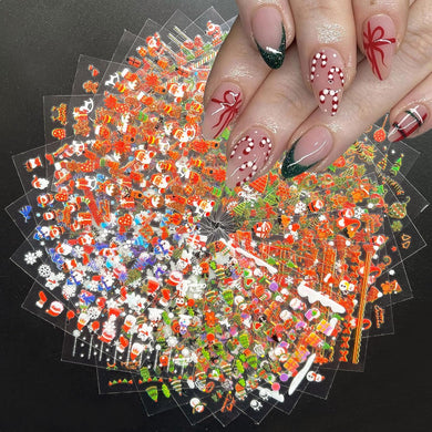 30 hojas de calcomanías de arte de uñas de Navidad autoadhesivas 3D de árbol de Papá Noel para arte de uñas A24