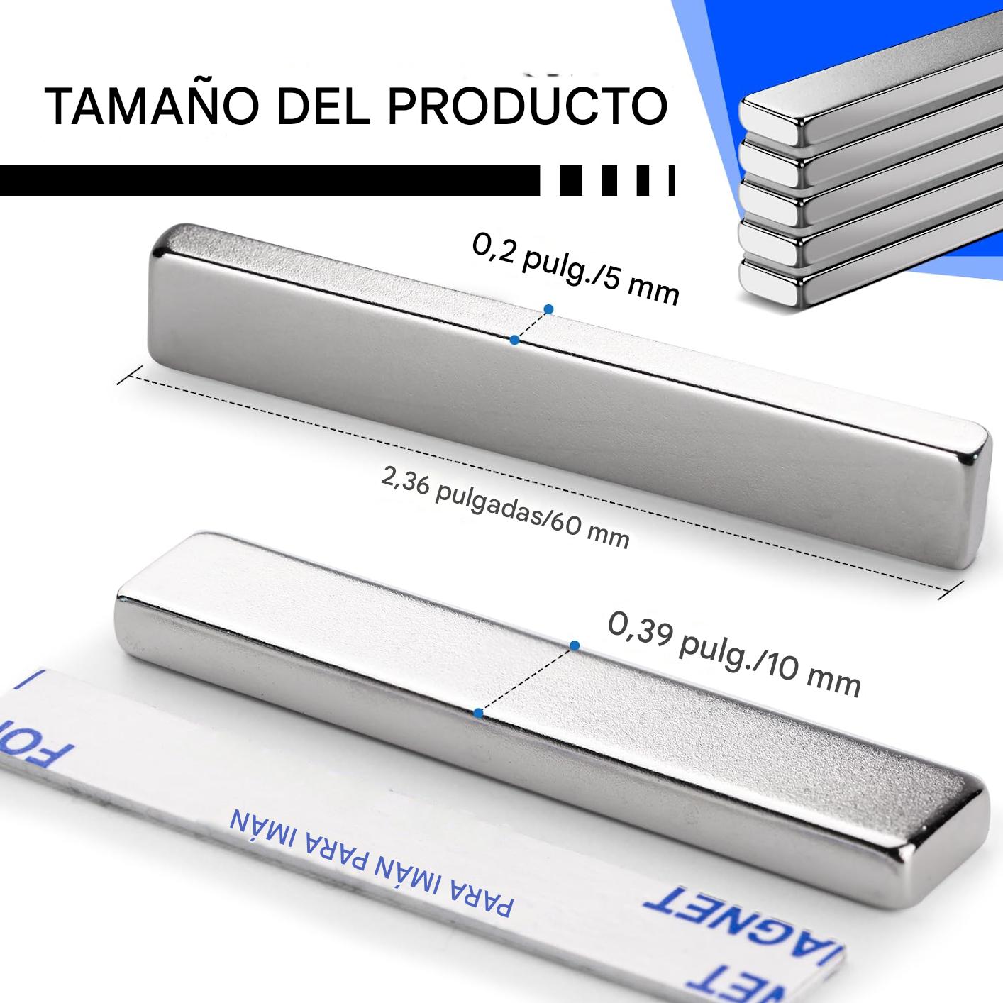 DIMENSIONES DE LOS IMANES - 60 mm x 10 mm x 5 mm. Tolerancias: ±0,2 mm x ±0,2 mm.