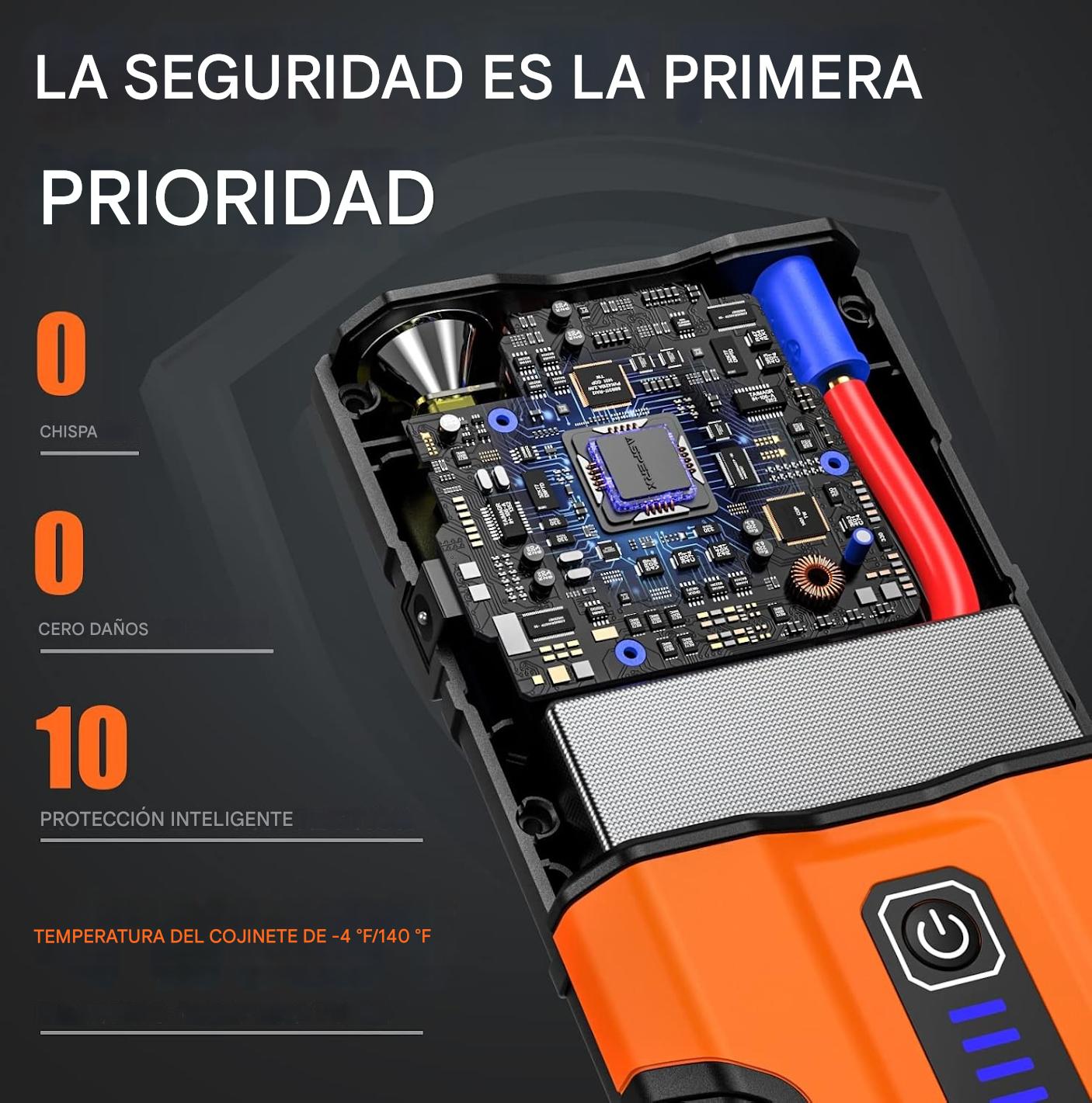 • 【10 protecciones de actualización】: paquete de baterías de arranque de salto seguro y fácil de usar sin la preocupación de conexiones incorrectas o chispas. La función de arranque de voltaje cero es una tecnología de protección de seguridad de AX2500, que detecta automáticamente la polaridad inversa para garantizar una conexión precisa antes de proporcionar energía a la mayoría de las baterías o dispositivos eléctricos de automóviles.