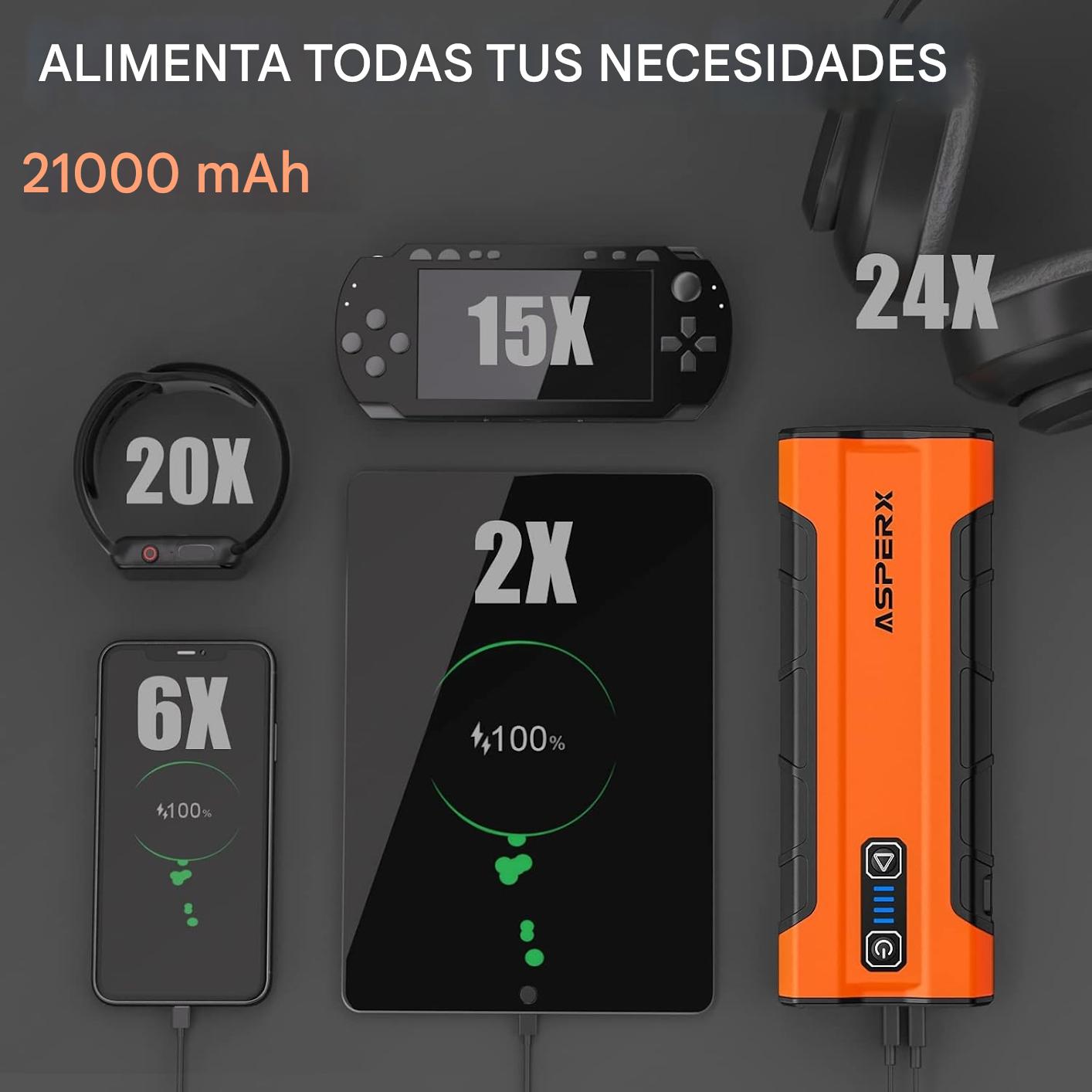 • 【Banco de energía portátil】:Más que un arrancador de salto de automóvil, AX2500 Car Starter diseñado con 2 salidas USB (5V / 3A) y (5V / 2.1A), el puerto USB 3.0 de carga rápida puede cargar completamente sus teléfonos celulares, tabletas y más al más rápido.