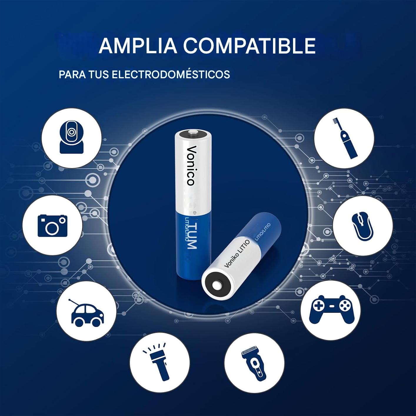 Paquete de 8 baterías de litio AAA Voniko que alimentan tus dispositivos electrónicos, controles remotos y otros electrodomésticos