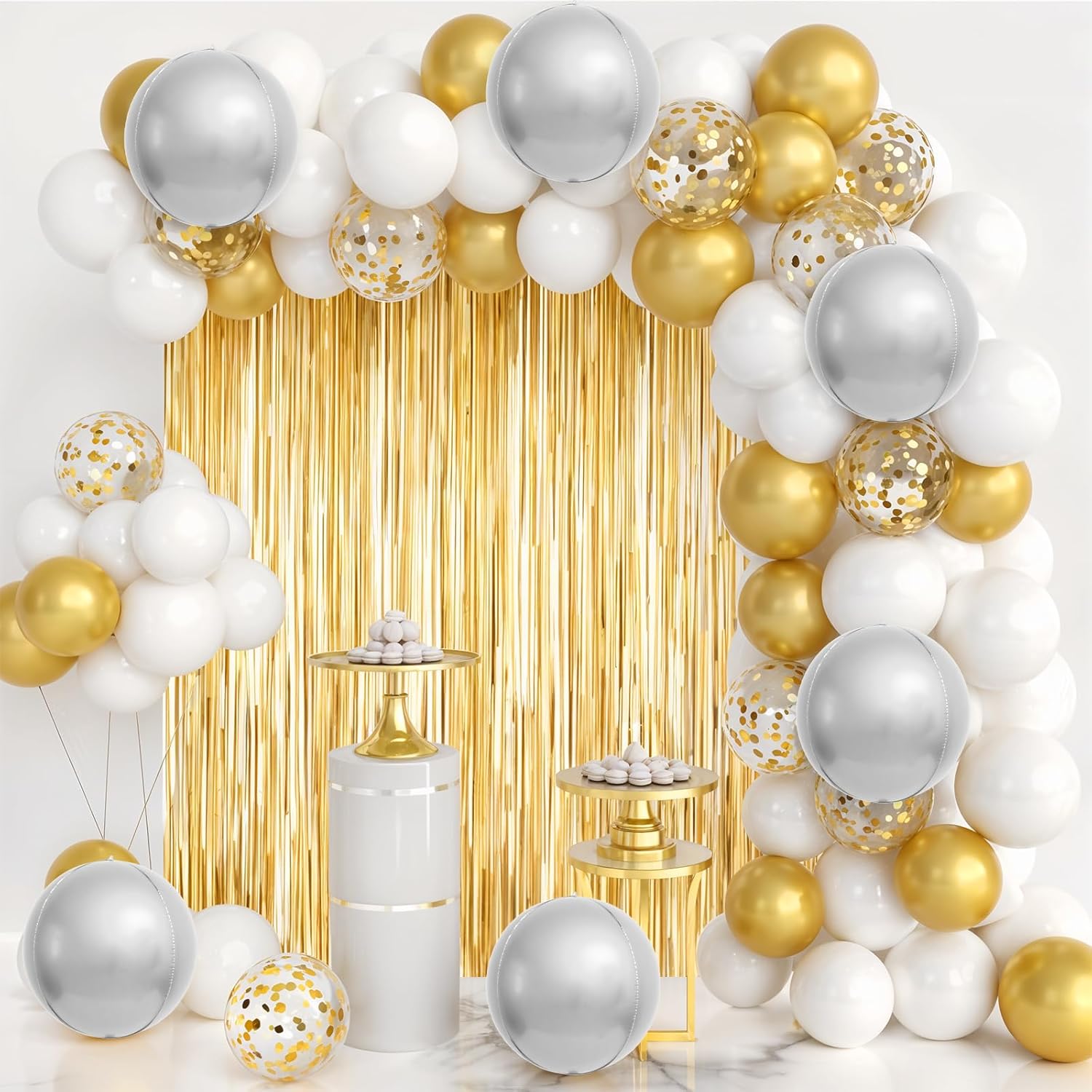 【AMPLIA APLICACIÓN】Estos globos redondos 4D dorados son ideales para diversas ocasiones, como cumpleaños, aniversarios, San Valentín, baby showers, bodas, despedidas de soltera, graduaciones (especialmente para la generación de 2025) y propuestas de matrimonio. También se pueden usar como fondo para fotos, etc. ¡Causarán sensación en las fiestas temáticas doradas!