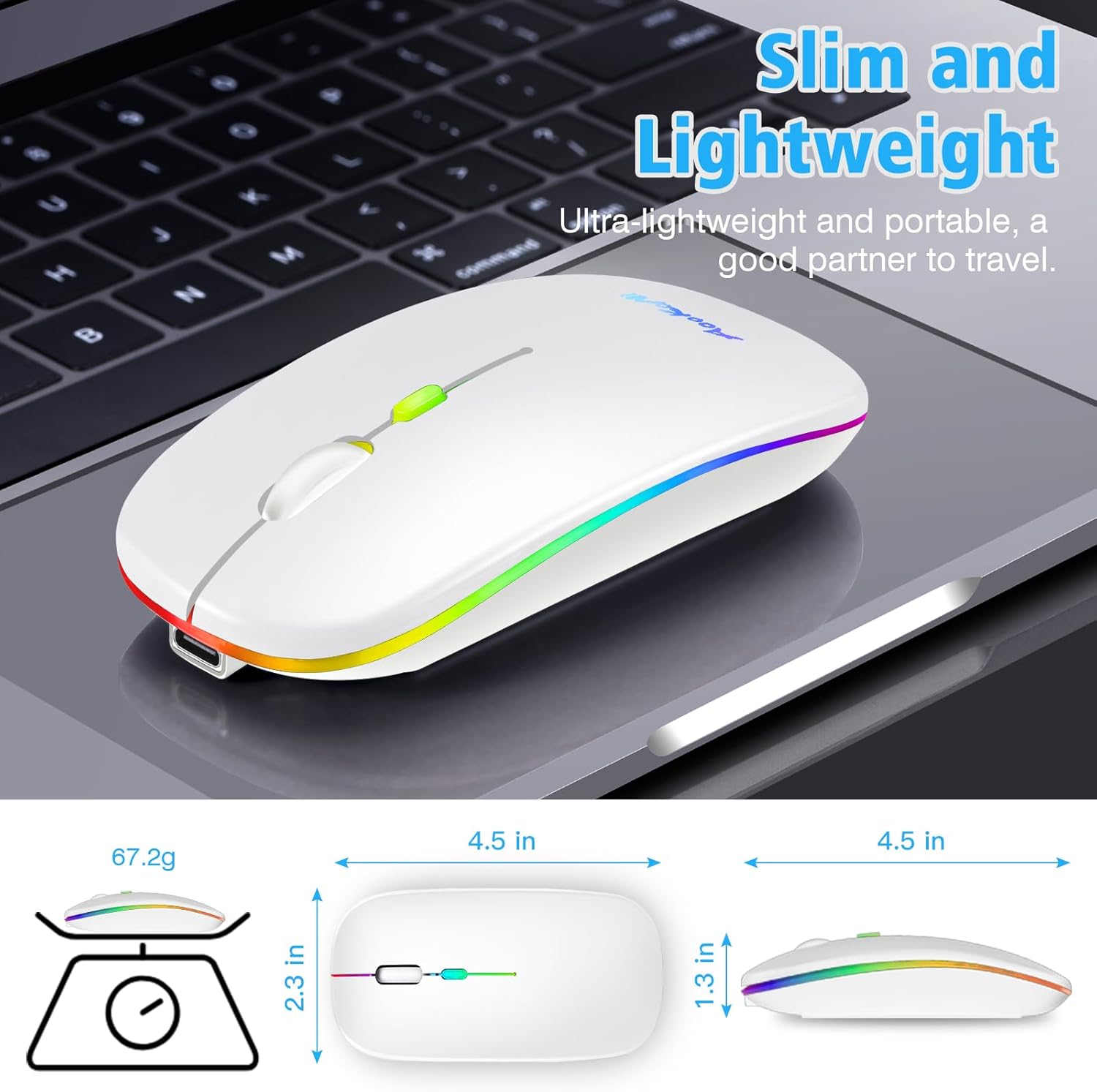 - Ratón Bluetooth inalámbrico de doble modo: (BT5.2/3.0 y 2.4G) El modo dual permite que un mouse cambie libremente entre dos dispositivos en una computadora. El modo de ratón Bluetooth se puede conectar a un dispositivo a través de BT5.2/3.0, mientras que el modo de mouse inalámbrico se conecta a otro dispositivo a través de un receptor USB 2.4G. No se requiere instalación de controladores, y es plug-and-play. La tecnología inalámbrica/Bluetooth proporciona una conexión fuerte y fiable, lo que permite una transmisión rápida de datos sin demoras ni interrupciones, con un alcance efectivo de hasta 32.8 ft (33 pies).