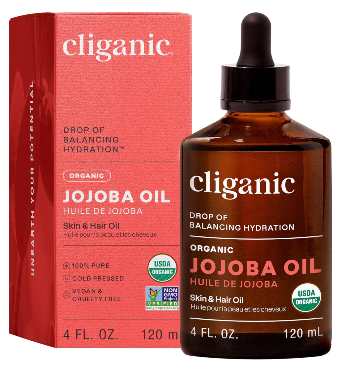 El aceite de jojoba orgánico 100% puro Cliganic es prensado en frío, sin refinar y todo natural, por lo que es el tratamiento definitivo para la piel seca y el cabello.