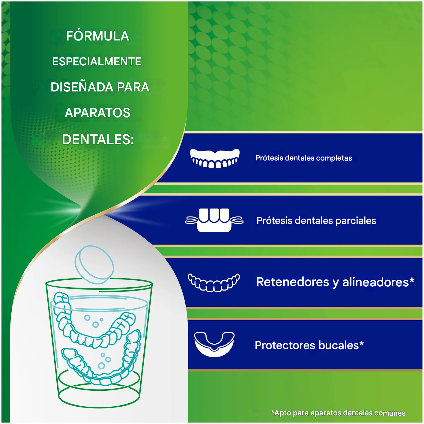 Fórmula especialmente diseñada para aparatos dentales, incluyendo dentaduras postizas completas, dentaduras postizas parciales, retenedores, alineadores y protectores bucales (3)