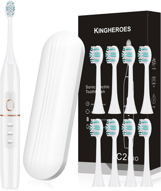 Cepillo de dientes eléctrico Sonic con 8 cabezales de cepillo y estuche de viaje, 4 modos, una carga durante 60 días,ln23 motor 42000 VPM, juego de cepillos de dientes eléctricos blancos