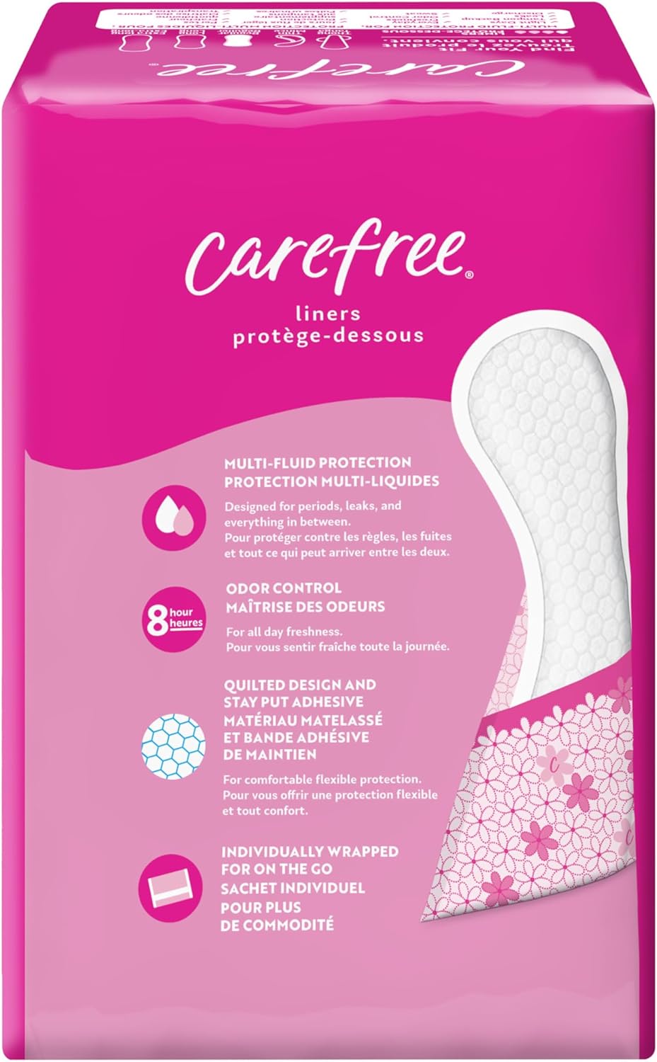 • Envuelto individualmente para llevar sobre la marcha: prácticos y sanitarios envueltos forros para meter en tu bolso mientras estás en movimiento. También prueba los forros sin envolver de Carefree cuando estés en casa.