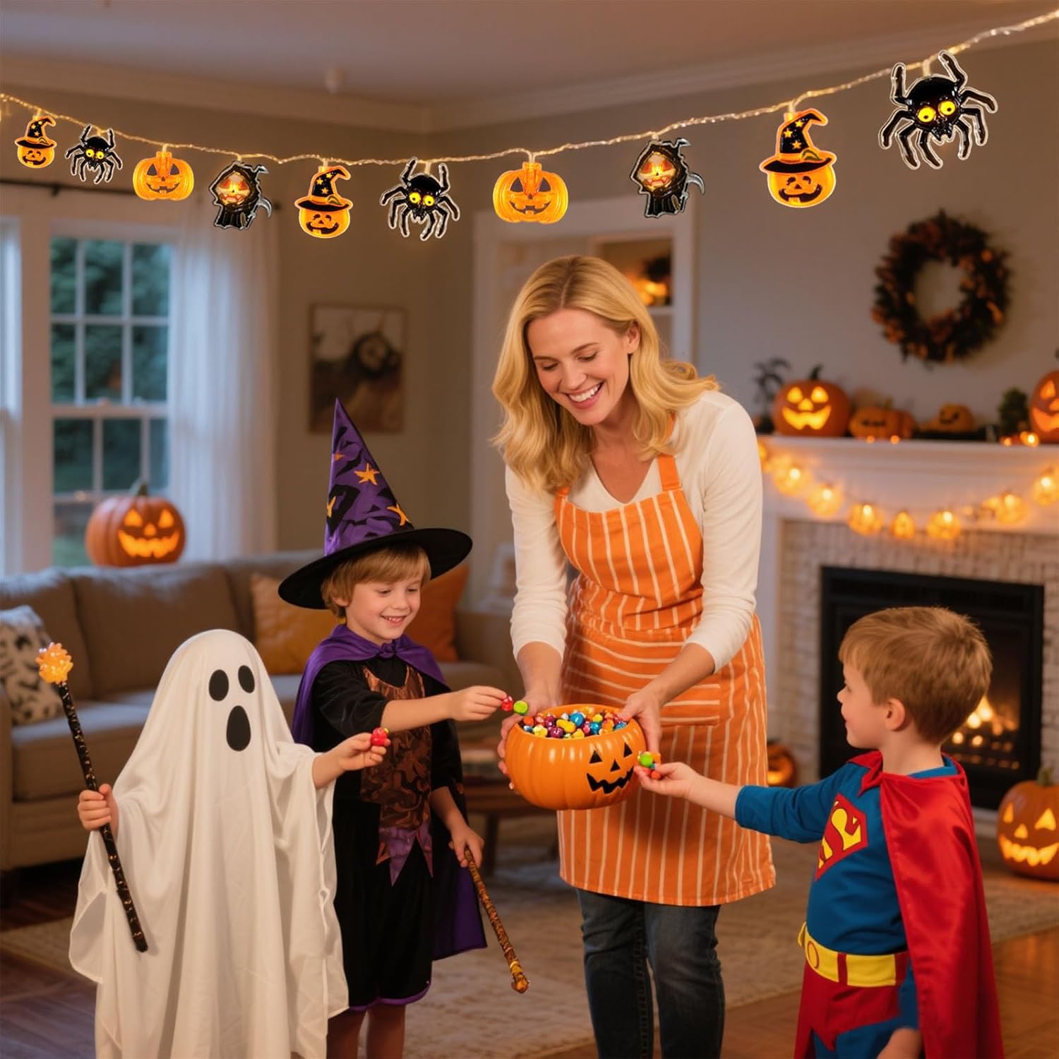 - 🍂 【Versátil para decoraciones de Halloween y otoño】 ¡Perfecto para crear un ambiente espeluznante de Halloween o un ambiente otoñal acogedor! Estas cadenas de luces de Halloween que funcionan con baterías son tu decoración preferida para varias estaciones. Colóquelos sobre su manto para el Día de Acción de Gracias, envuélvalos alrededor de una corona de cosecha de otoño o forre su porche durante toda la temporada de otoño. El cálido resplandor naranja de estas luces de cuerda de otoño añade un toque festivo a cualquier espacio.