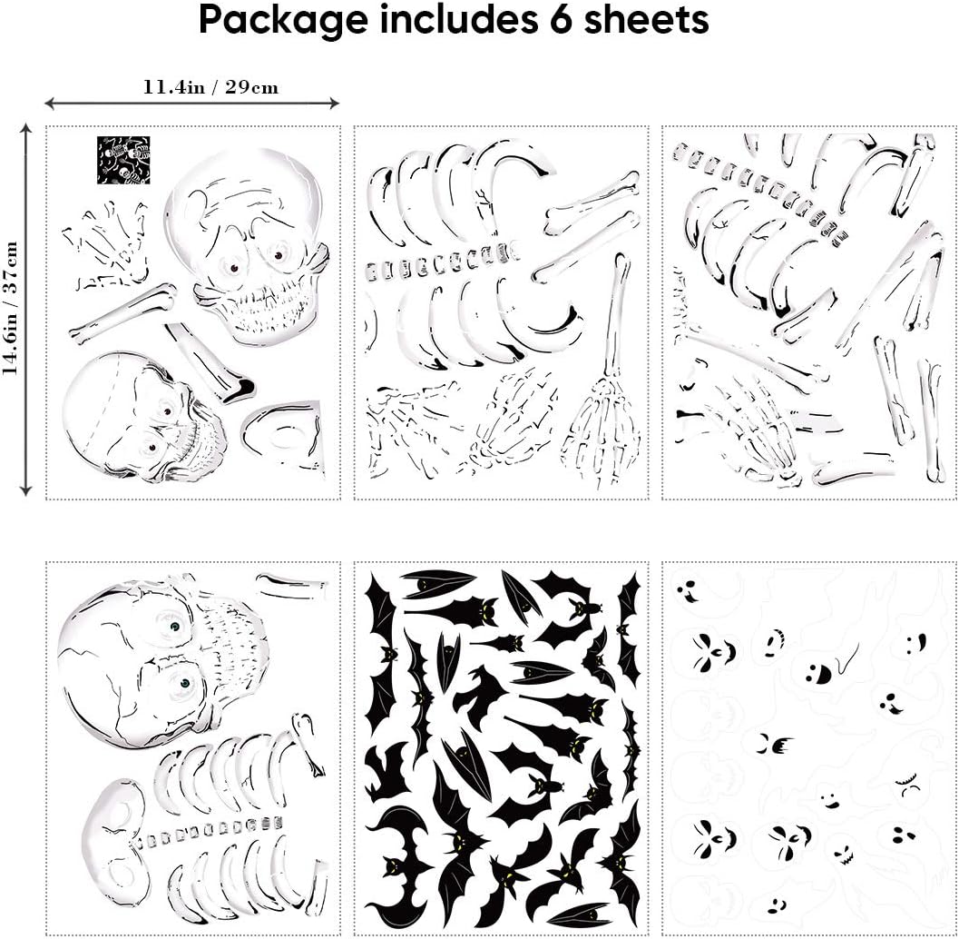 - 【Adhesivo de ventana de Halloween】 Viene con 70 pegatinas de ventana de Halloween con el murciélago, fantasmas, esqueleto en total 6 hojas, es una forma interesante de agregar la decoración espeluznante en tu casa este Halloween.
