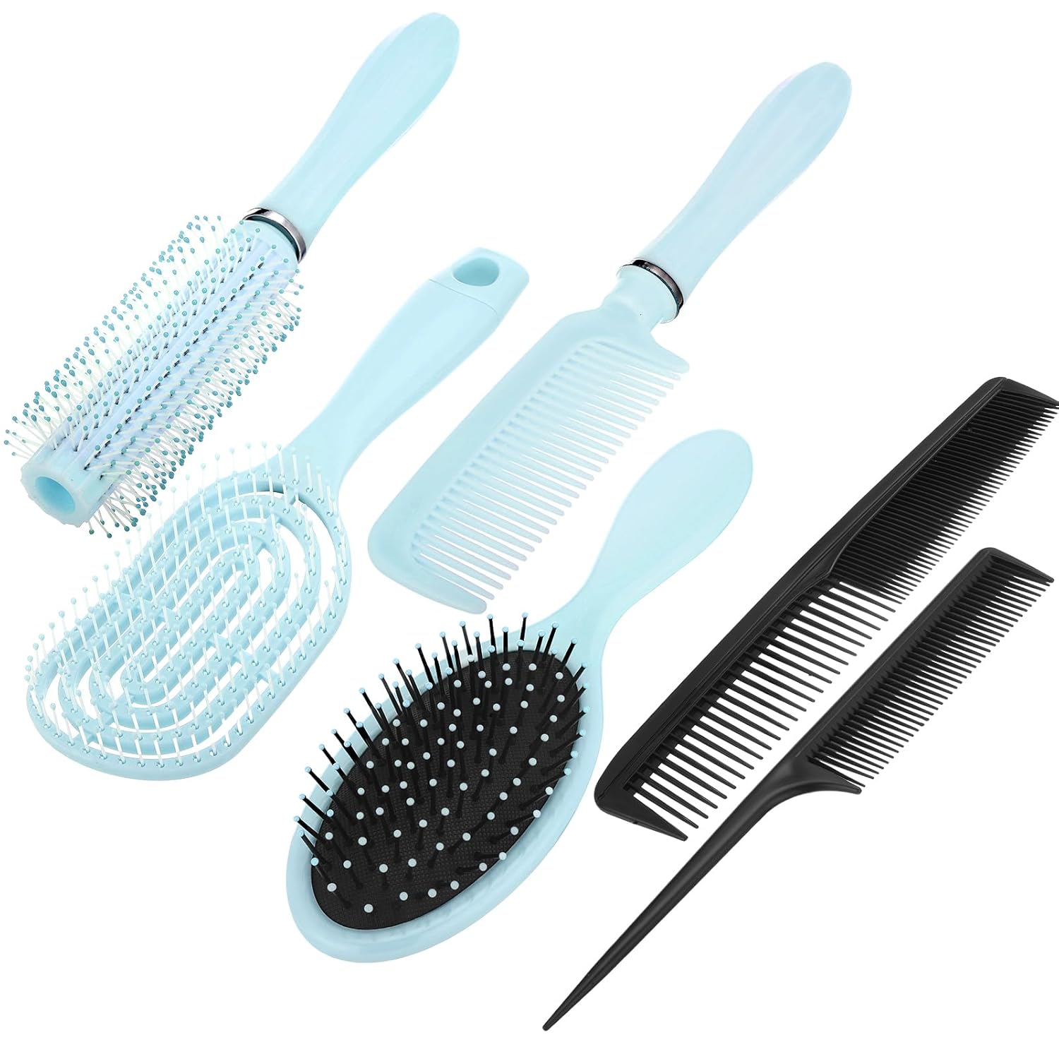 Cantidad de peine para el pelo: Nuestro set incluye cepillos de 6 piezas, cepillo de paleta, peine rizado, peine ovalado, peines de ratel y peine recto para satisfacer tus diferentes necesidades.