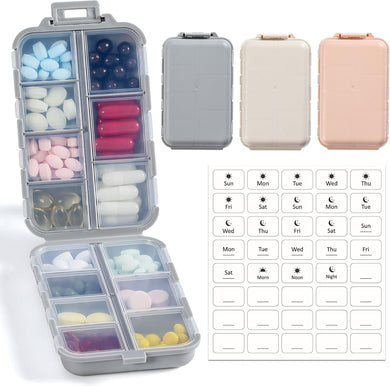 Paquete de 3 cajas organizadoras de pastillas de viaje de 14 rejillas con etiquetas a24