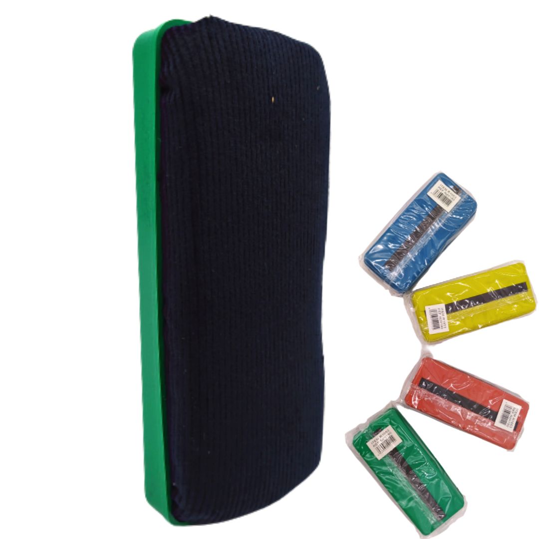 Borrador manual para pizarras blancas, tamaño práctico. Fabricado con material resistente y superficie de fieltro que asegura un borrado limpio y rápido. Ideal para uso escolar, oficinas y espacios de capacitación.