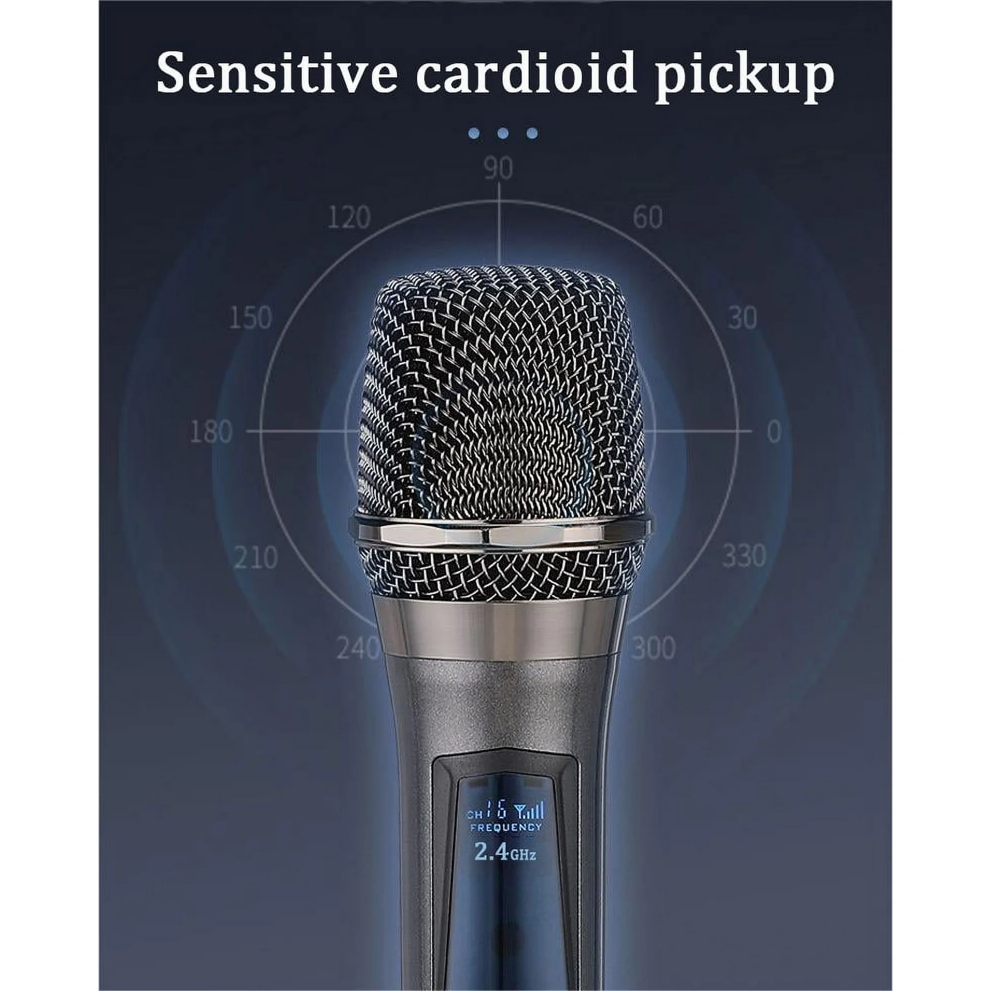 - Plug and Play: Simplemente conecte el cable de alimentación, sin necesidad de emparejamiento tedioso, lo que le permite conectarse fácilmente al cable de alimentación y disfrutar al instante de la libertad de cantar, hablar y presentar. La señal es estable y compatible con una variedad de dispositivos, incluyendo máquinas de karaoke, altavoces, etc.