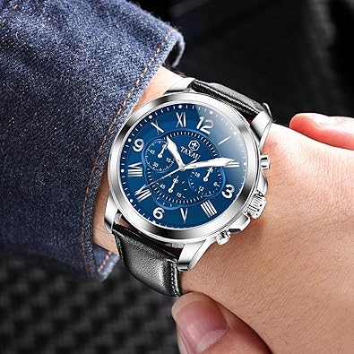 - Diseño de esfera multifuncional: los relojes clásicos de cuero Taxau para hombre con tres subesferas multifuncionales soportan segundos, minutos, cronógrafo de 24 horas, fácil de operar (ver fotos para instrucciones). La pulsera de acero inoxidable duradera y cómoda es adecuada para el uso diario, y esfera de vidrio mineral resistente a los arañazos, doble mejora de la función y la calidad