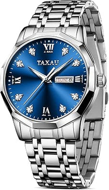 Relojes para hombre, números arábigos, esfera grande, fácil de leer, estilo simple, día fecha, a21 diamante, cara grande, reloj de acero inoxidable impermeable para hombre
