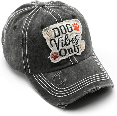 Gorra de béisbol unisex con parche bordado vintage ln25 desgastado con texto "Dog Vibes Only"