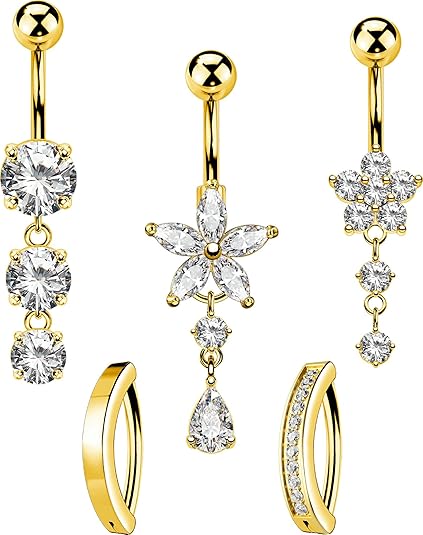 - 【De los días de playa a las noches de festival】 Este juego de 5 anillos para el vientre dorados combina estilo y versatilidad, con mariposas, flores, lágrimas y más. Ideal para ropa de playa soleada o para bailar bajo las estrellas.