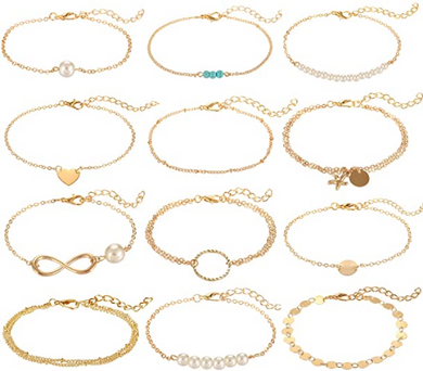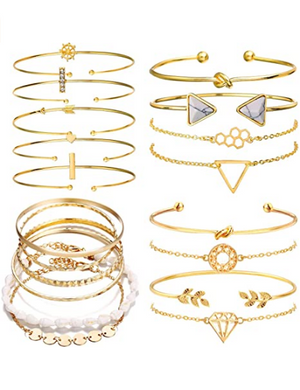 Pulsera apilable de múltiples capas, 19 unidades, oro rosa y oro para mujeres NDP52