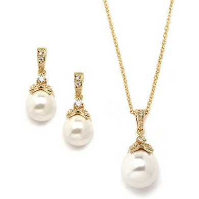 Juego de collar y pendientes de perlas de color marfil para novia NDP51