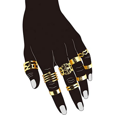 Juego de 9 anillos para nudillos para mujer, chapado en oro de 18 quilates NDP39