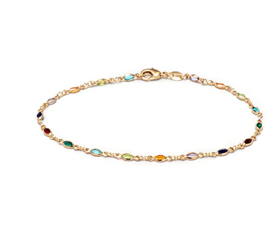 Tobillera baguette bañada en oro de 18 quilates y cristal multicolor NDP63