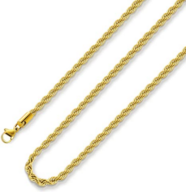 Cadena de cuerda chapada en oro de 18 quilates de acero inoxidable, para hombre y mujer NDP57