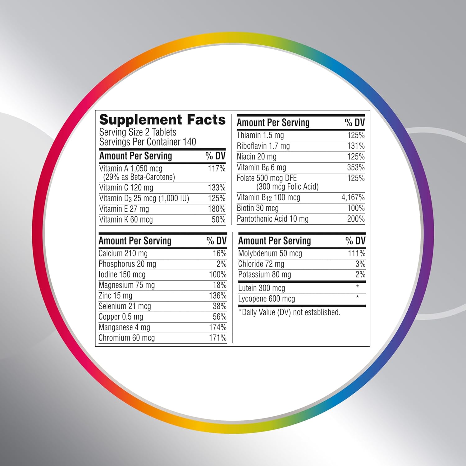 El multivitamínico para hombres mayores de 50 años contiene vitamina D y magnesio para ayudar a mantener la salud muscular, vitaminas B para ayudar a promover la salud del corazón, zinc para ayudar a apoyar la función cerebral, luteína y vitaminas A, C y E para apoyar ojos saludables (1, 2, 3). El multivitamínico senior para hombres es un suplemento multivitamínico verificado sin OMG (4) y sin gluten para hombres.