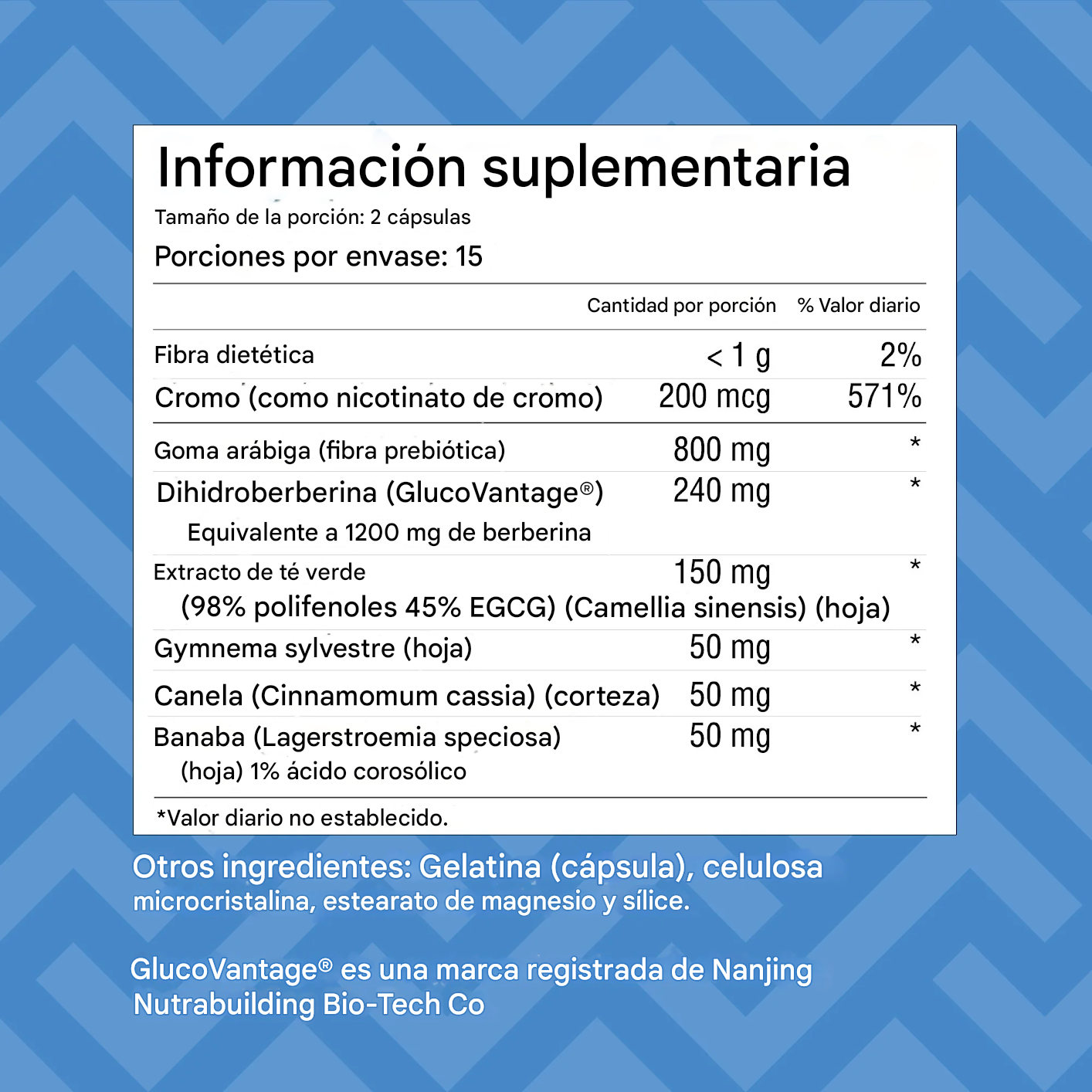 FORMULADO PARA UN MEJOR APOYO AL AZÚCAR EN SANGRE. NutraBetic Berberine + es un suplemento nutricional multifacético formulado específicamente para ayudar a mantener niveles saludables de azúcar en sangre. Nuestros ingredientes exclusivos incluyen GlucoVantage® (dihidroberberina) de berberina, cromo, canela, extracto de té verde y hoja de banaba para una máxima eficacia.