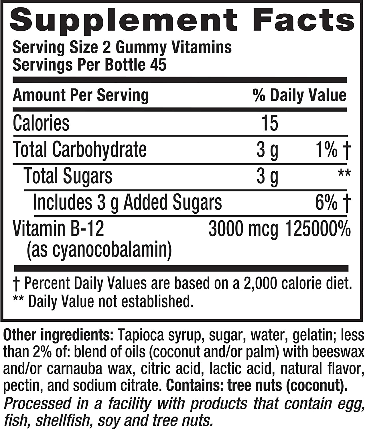 Vitafusion Extra Strength Vitamin B12 fusiona deliciosos y nutritivos. Dos gomitas de B12 Extra Strength proporcionan 3000 mcg (valor diario de 125000%) de B12. ¡Vitamina mejor! En vitafusion, creemos que el sabor y la nutrición se pueden fusionar para brindar la mejor experiencia vitamínica, asegurando que sea una parte fácil y deliciosa de su día. Durante más de 12 años, hemos ayudado a las personas a vivir una vida feliz y saludable con nuestras vitaminas y suplementos gomosos. Todo es posible cuando una buena nutrición es su base. Dé un paso fructífero hacia un mundo más saludable y feliz con la marca de gomitas de vitaminas número uno de Estados Unidos. Vitamina mejor