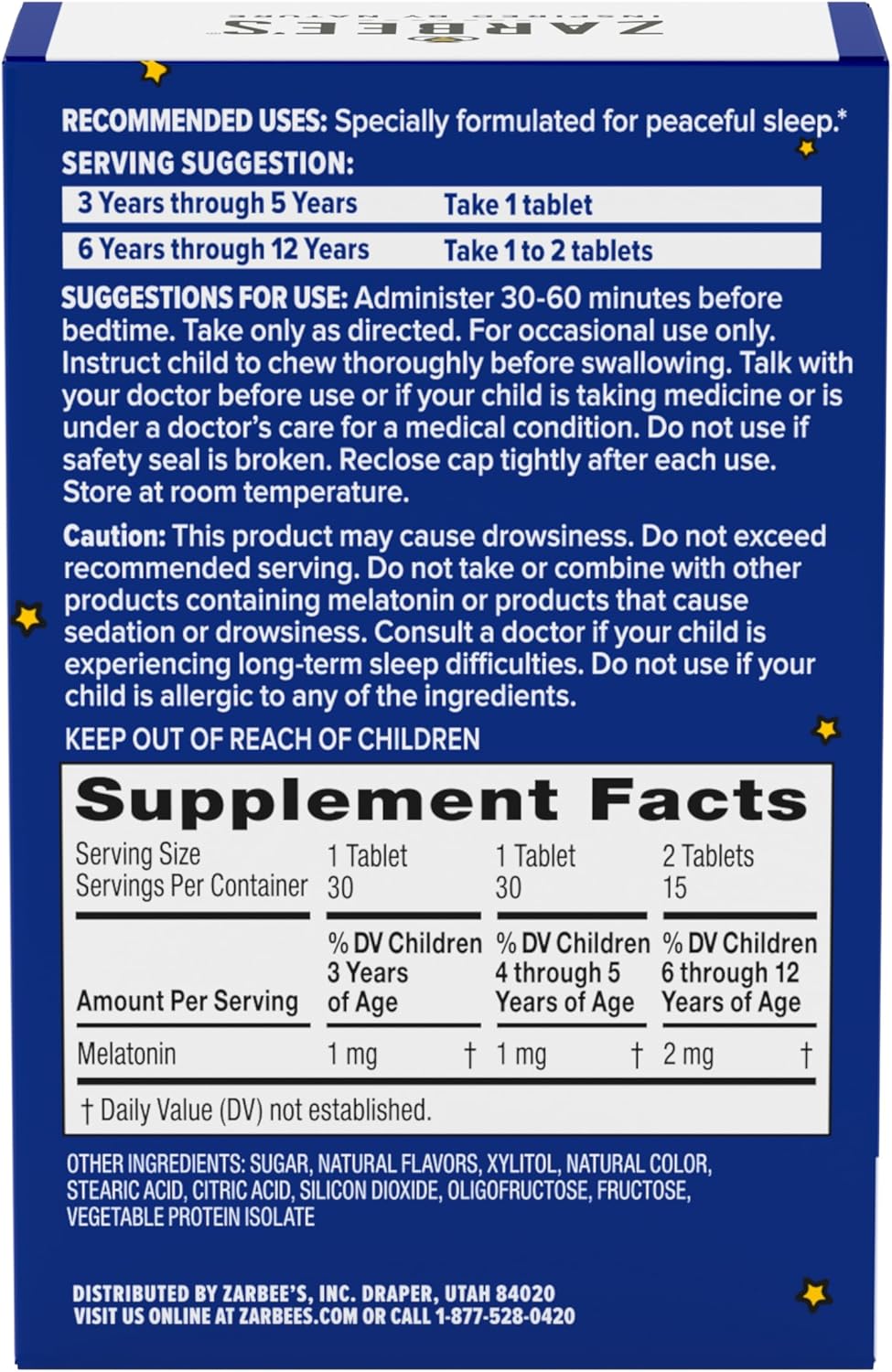- Atrapa de forma segura algunos zzzs: ayude al insomnio ocasional de su hijo con nuestro sabroso y natural sabor a uva, suplemento de melatonina. Cada tableta masticable contiene 1 mg de melatonina clínicamente estudiada para ayudar a promover un sueño tranquilo en niños de más de 3 años